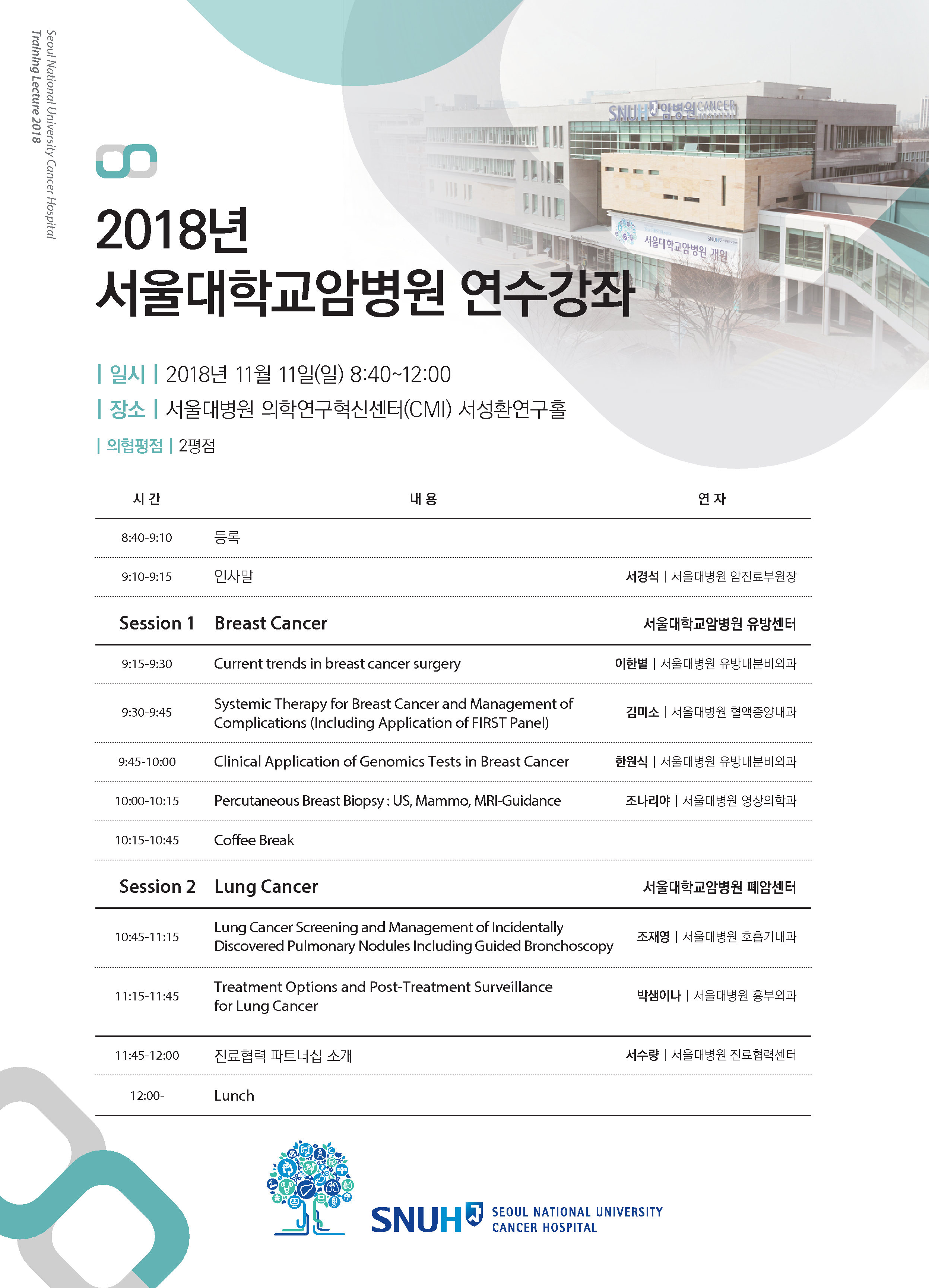 2018년 서울대학교암병원 연수강좌 (유방암 · 폐암)